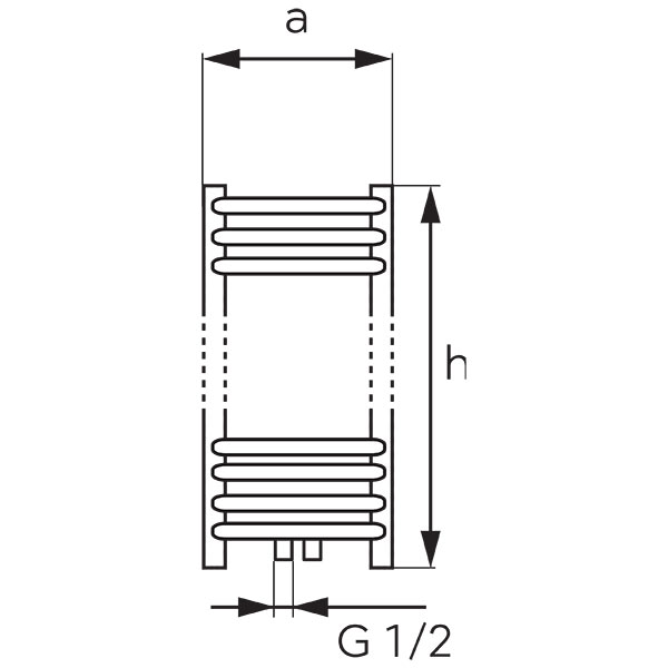 | Index | a [mm] | h [mm] | Connection spacing | Installation parameters [°C] | Power [W] | Dedicated heater power | Pipe arrangement |