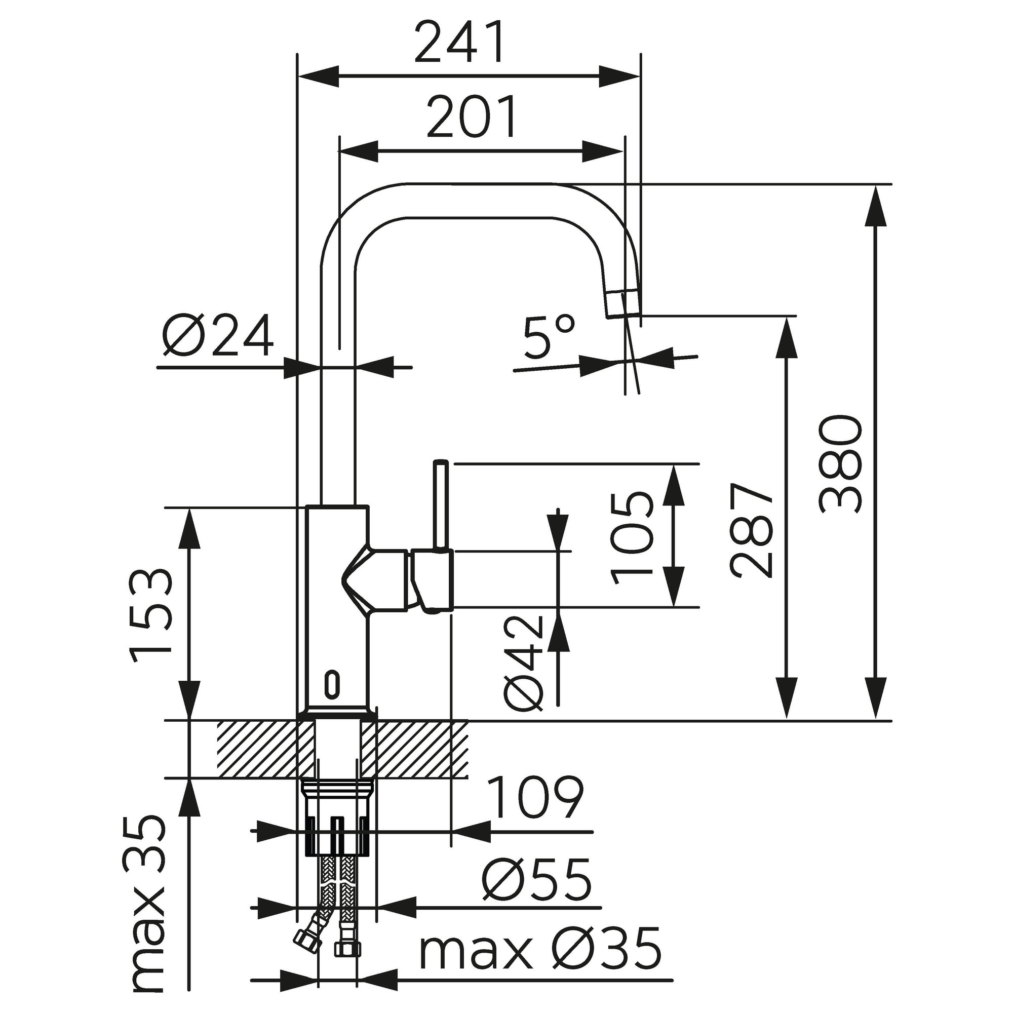 Spout outreach [mm]: 201